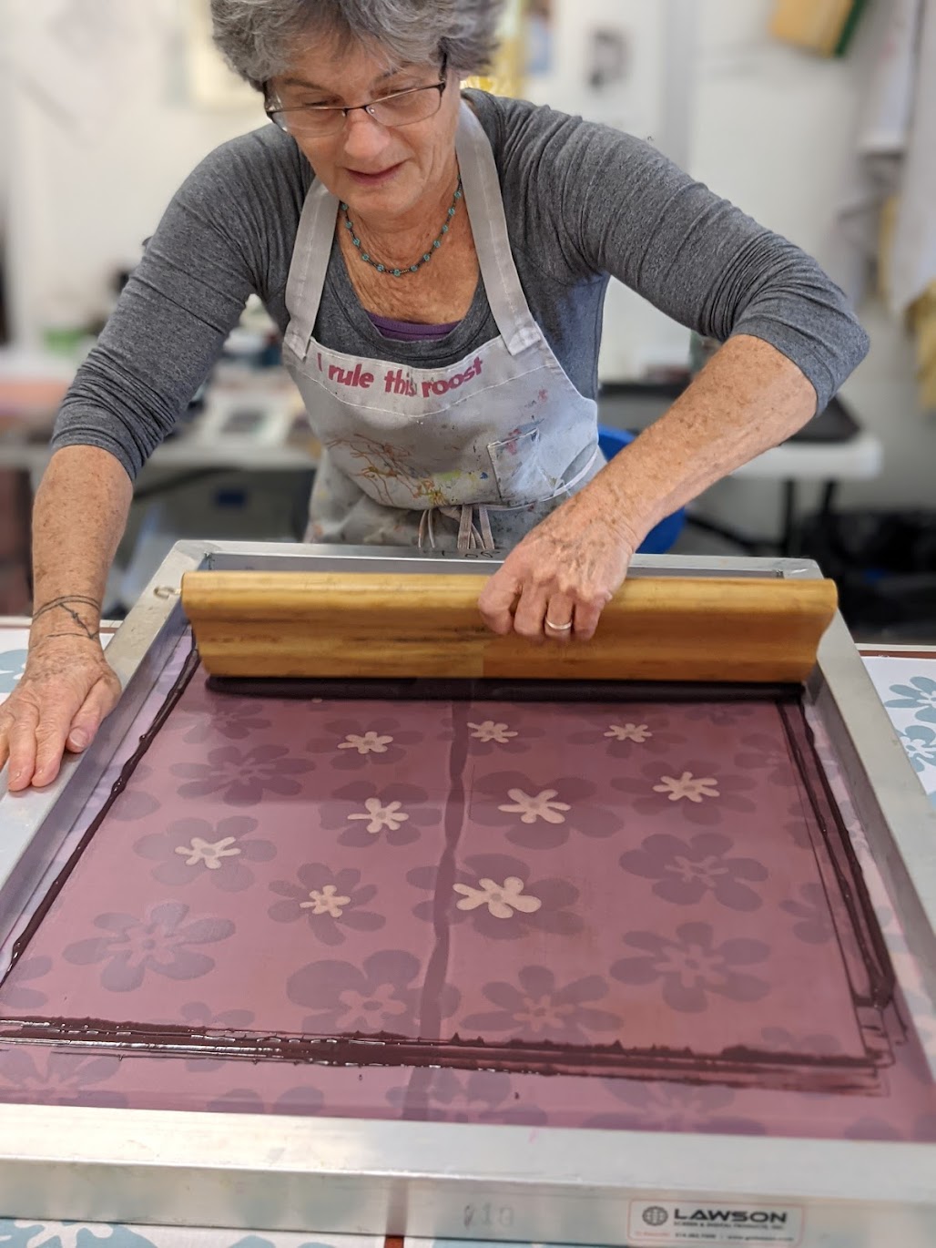 Jeanne teaches workshops across the country in block carving and screen printing on fabric. She offers individual private lessons and consultations.